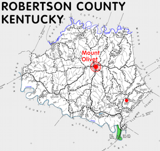 Robertson county is in the Outer Bluegrass region of Kentucky. The elevation in the county ranges from 550 to 1009 feet above sea level.